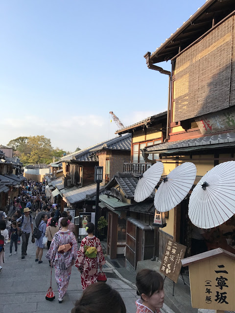 轉走到三年坂和二年坂,古色古香的商店搭配彎曲的階梯,還有紙傘襯托,很有意境,但人超多,沒辦法慢慢拍照